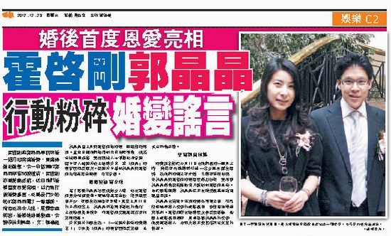 郭晶晶晒钻戒不屑小三传闻 晶刚恋爱8年恩爱没吵架/组图 2013-01-10 18:08:32 来源: 21CN体育 郭晶晶婚变?其实霍家少奶奶现在可幸福呢!继早前晶刚合影破婚变谣言之后,近日郭晶晶终于婚后首度在公众场合亮相。 港媒报道截屏:郭晶晶霍启刚亮相破谣言 上一页 1 2 3 4 5 6 7 8 9 下一页