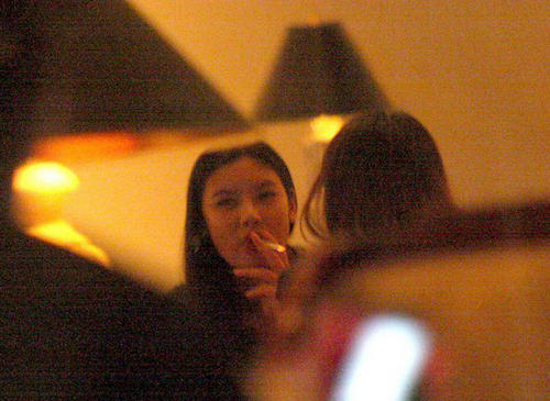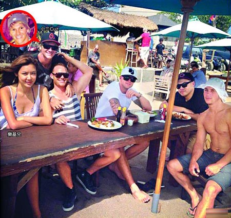 乐基儿(左一)和新欢Cuz(左二戴帽者)