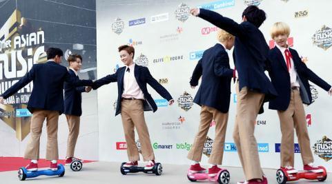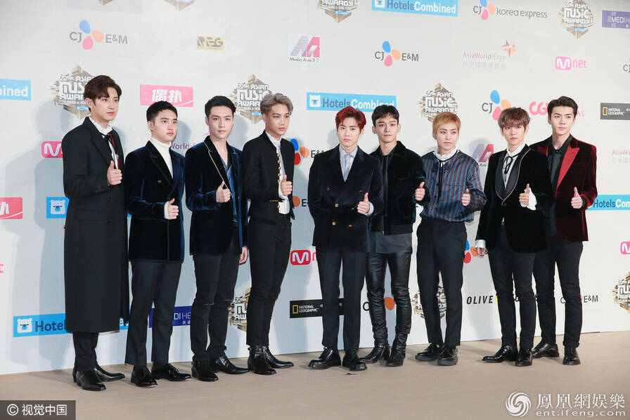 EXO帅气登场,张艺兴“小油头”扮酷。