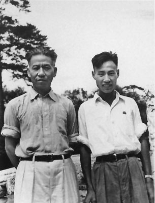 1950年7月,刘少奇同儿子刘允若在北京玉泉山留影